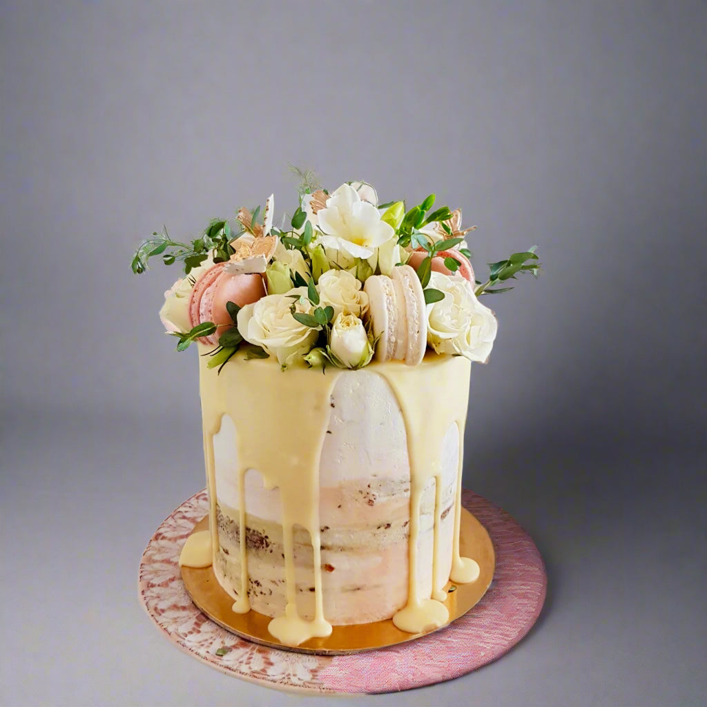 Delicate, elegant, and effortlessly beautiful, our Semi-Nude Bouquet Cake is the perfect centerpiece for your next celebration. Lightly frosted to showcase the natural texture of the cake beneath, this semi-nude design offers a refined, rustic charm that suits any occasion, from intimate weddings to modern birthdays.