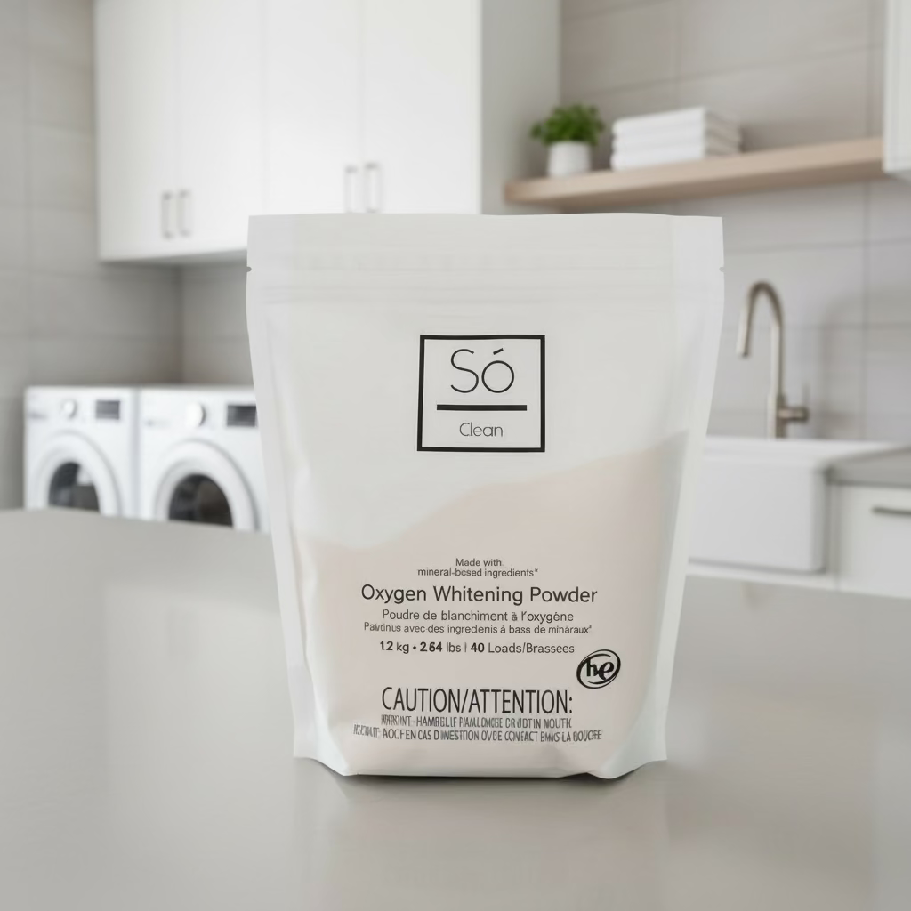 Só Clean - Oxygen Whitening Powder is made with only 3 mineral based ingredients and naturally fights tough stains on clothing and surfaces without the use of chlorine bleach or other harsh chemicals. Biodegradable, septic tank and grey water safe, unscented, phosphate and dye free, this mineral-based oxygen whitening powder can be used as a laundry booster to keep your next load of whites white and your brights bright or applied to that stubborn red wine stain to get it out pronto.