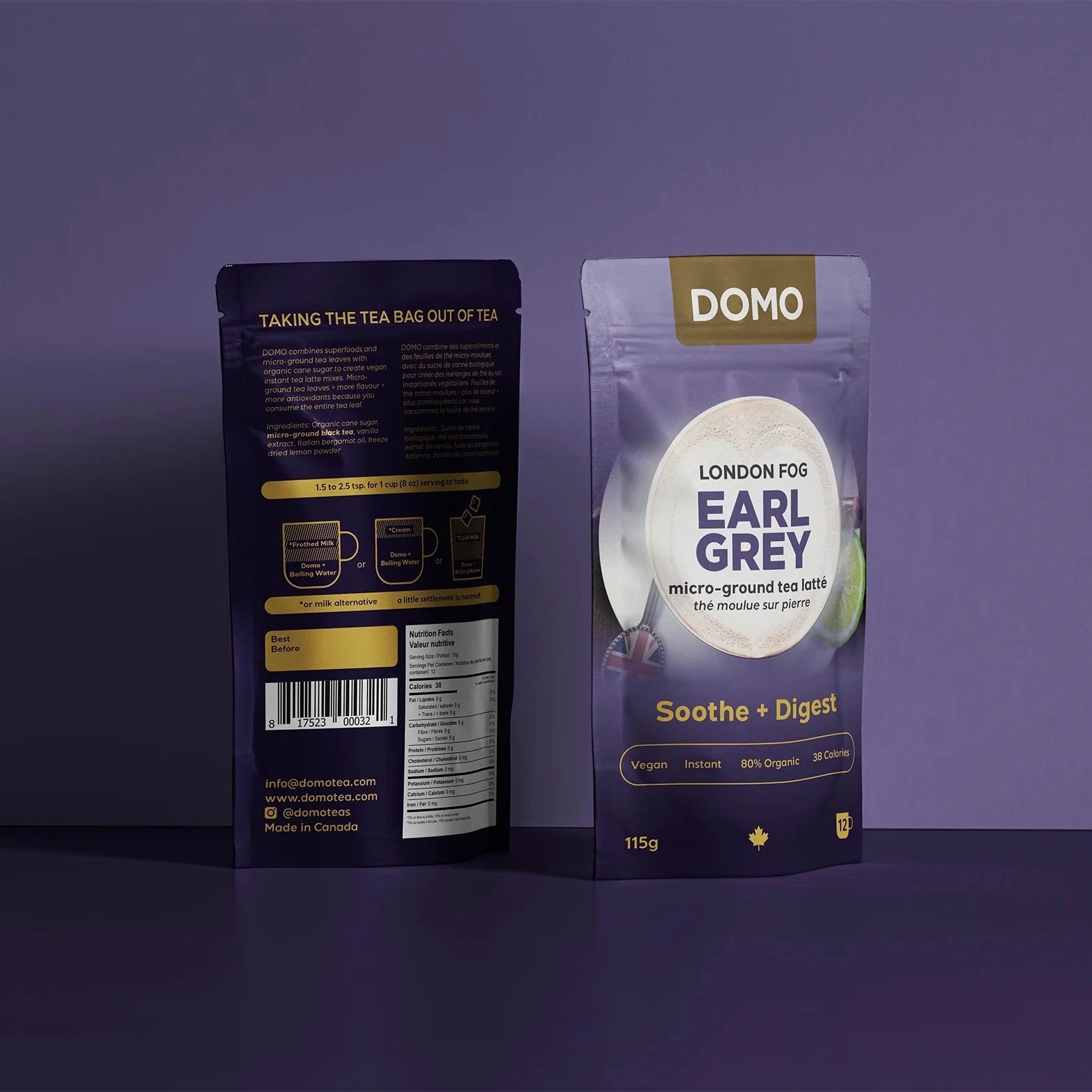 Introducing DOMO micro-ground tea at Queen City Cakes. Whole leaf wellness in every sip, meet London Fog 2.0. It's the superfood version of your traditional Earl Grey tea bag. DOMO Earl Grey London Fog presents captivating hints of bergamot and vanilla. It is delicately sweetened with organic cane sugar.