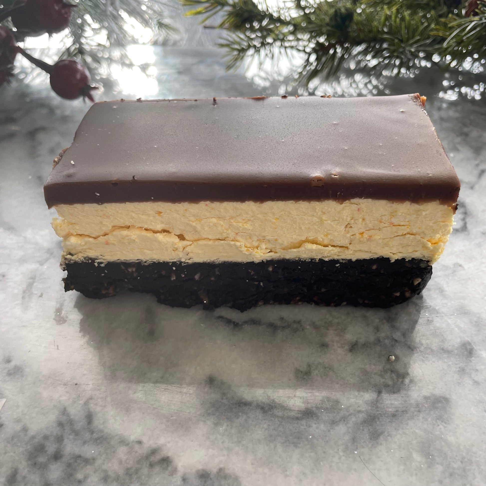 Queen City Cakes' Luxury Nanaimo Bar is an exquisite take on a beloved classic, perfect for those who appreciate indulgence in every bite. This decadent treat features three sumptuous layers: a rich, chocolatey base with a hint of coconut and graham cracker, a smooth and creamy custard center, and a glossy chocolate ganache topping that melts in your mouth. Each layer is meticulously crafted to ensure the perfect balance of textures and flavors.
