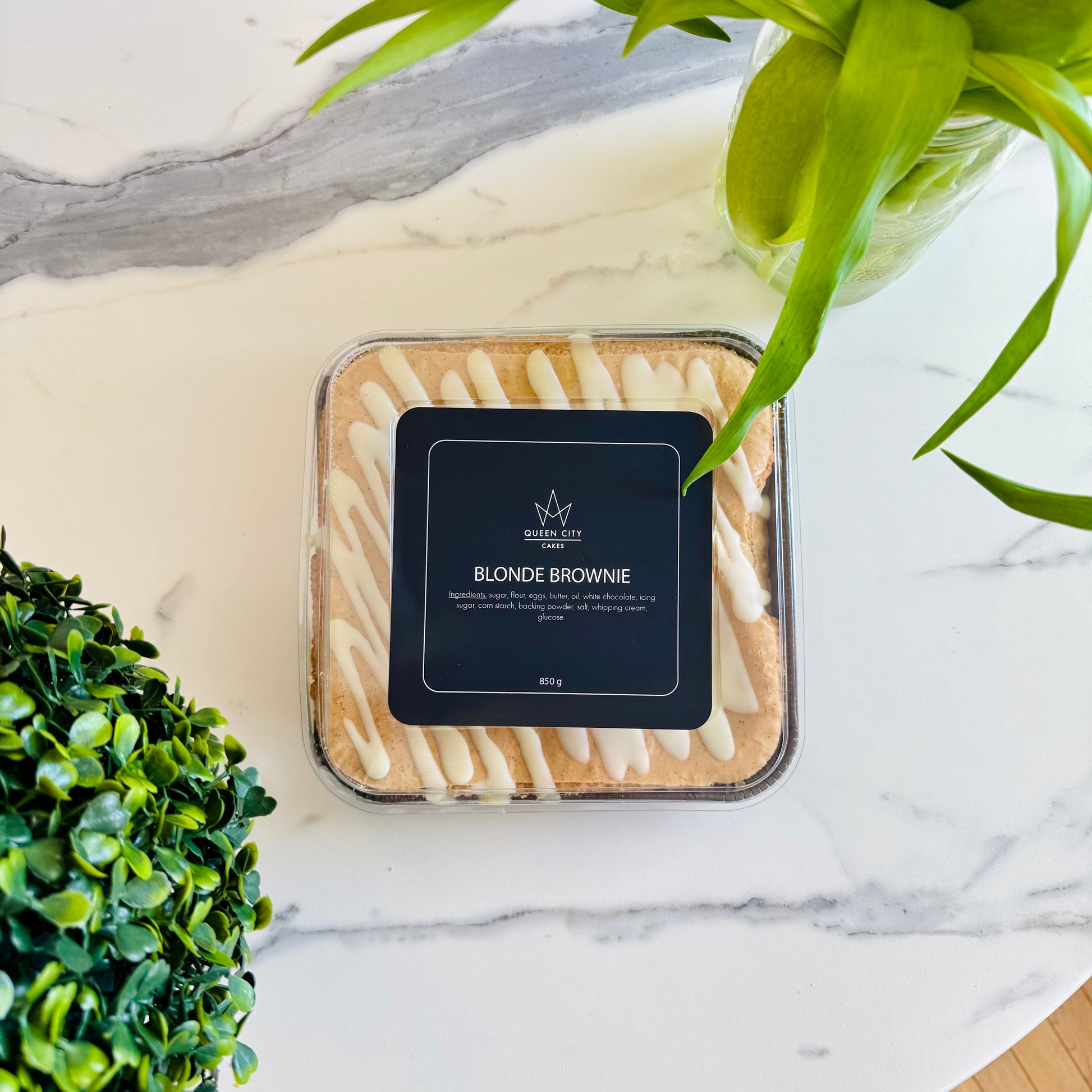 Ideal for dessert, a special occasion, or just to indulge in a little luxury, Queen City Cakes' Scrumptious Blonde Brownie is sure to delight your taste buds and leave you craving for more.
